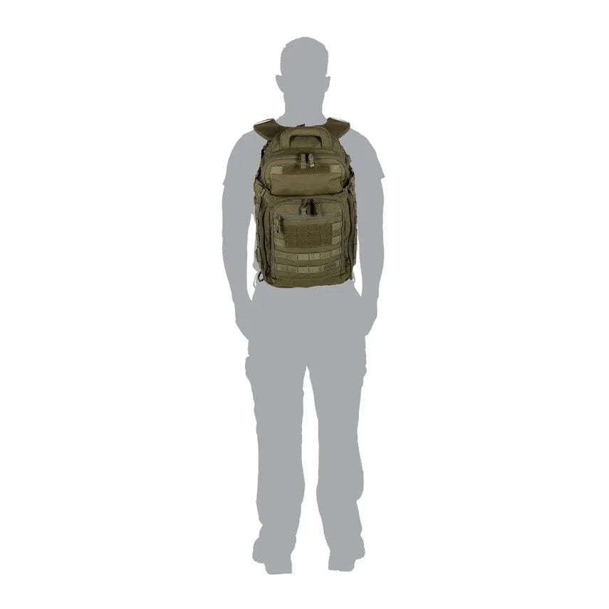 The 511 All Hazards Prime 29L Pack Double Tap is meaner than your average bag. Designed with input from MACTAC instructors, the bag's main compartment can hold 2 ammo Mules or other equipment, while the front panel unzips 180 degrees for full access to a MOLLE - and SlickStick-compatible medical compartment.