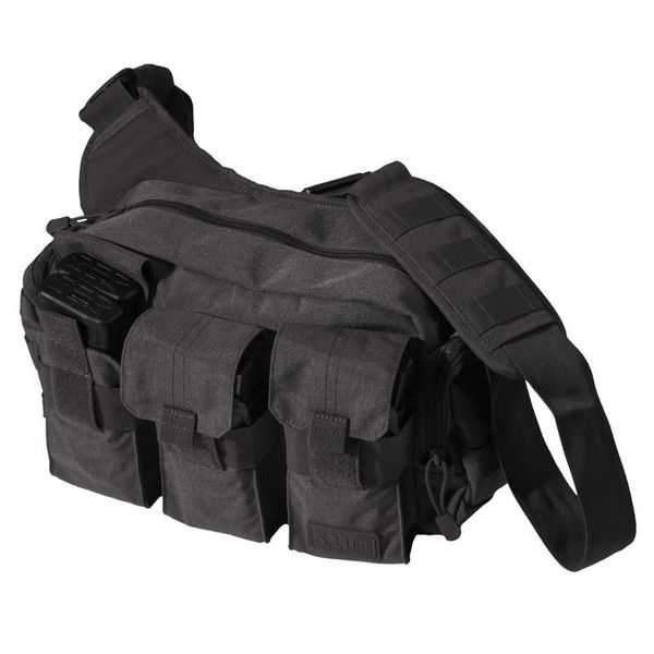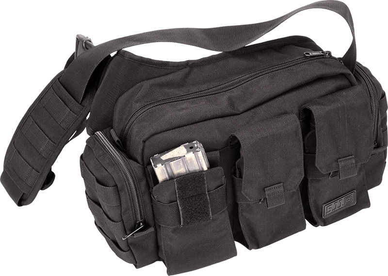 The 5.11 Bail Out Bag features tough 1050D nylon body fabric construction that delivers extreme versatility. While staying close to the body, the Bail Out Bag provides users with easy access to all its compartments while still being compact enough to deploy from a vehicle. The Front Mag pockets hold up to 6 AR magazines with the side utility pocket designed with web platforms. You can rest assured that the 5.11 Bail Out Bag will have all the room you need for easy deployment.