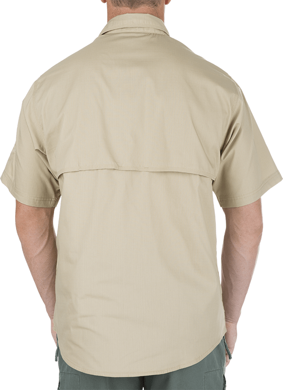 In addition to its breathable fabrics and strategic construction, the 5.11 Taclite Pro Short Sleeve Shirts employ a large cape-back with a tacked center point covers moisture-wicking Drilex material to efficiently vent and evaporate moisture around the clock. Stitched eyelets at each gusseted underarm further dispel heat and moisture to keep you cool.