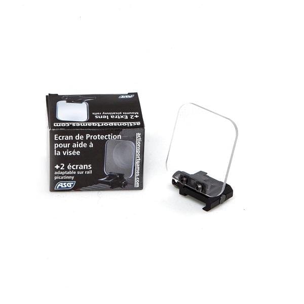 The clear see-through acrylic lens mounts in front of your optics as a protective shield against flying BBs and other types of debris.