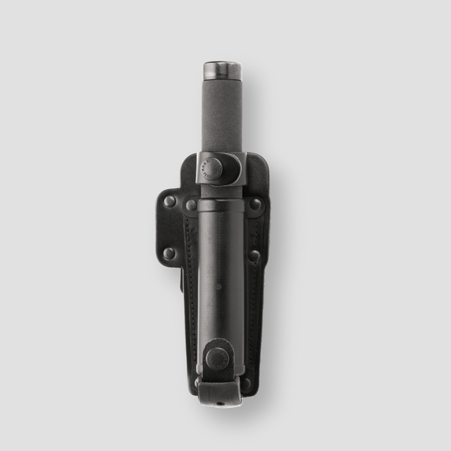 The Peter Jones expandable Baton Holder with Leather strap has a belt loop to fit all duty belts so it can be positioned in a place which suits you. This holder is compatible with friction-lock or autolock batons for the Monadnock, ASP, Casco, esp and Bonowi batons.