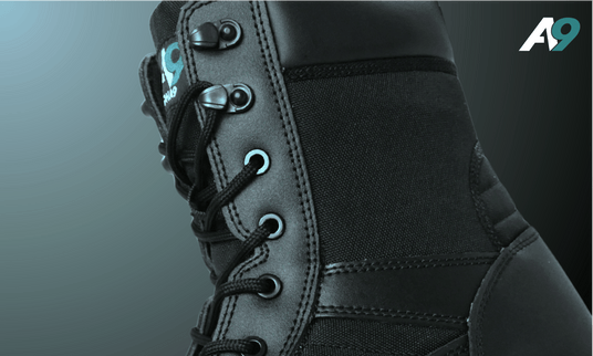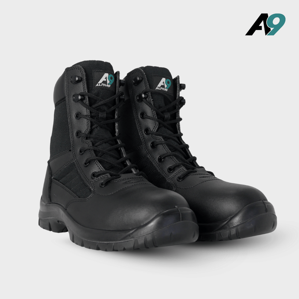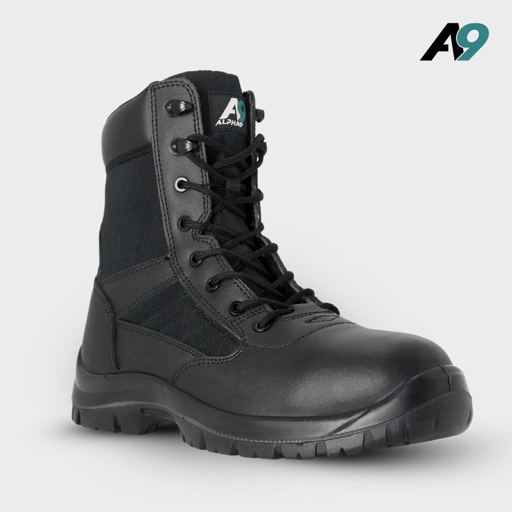 Designed as a modern upgrade to the classic patrol boot, the Alpha9 Trooper combines a leather and nylon upper to deliver the right balance of structure and airflow. The result is a boot that supports the foot during movement while remaining breathable and comfortable over long shifts, helping to reduce heat build-up and discomfort during extended wear.