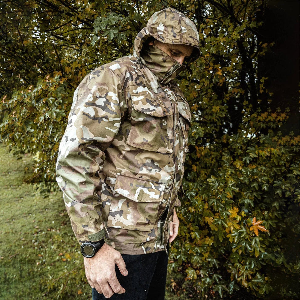 The Highlander Typhoon Waterproof Jacket HMTC is compatible with Army issue waterproofs. It is a lightweight, highly wind and waterproof jacket that gives you outstanding protection from the elements.