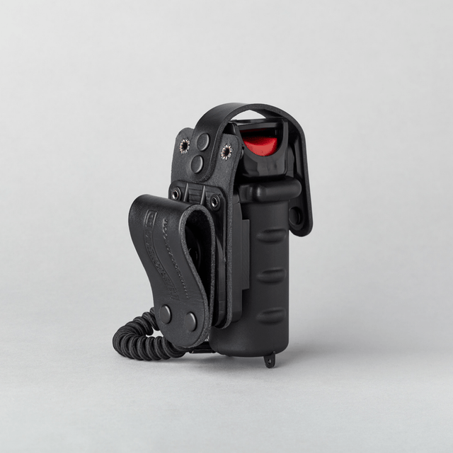 These CS Spray holders offer cannister protection and lanyard security in a high quality leather and durable nylon holder. With right/left hand preference and ease and speed of withdrawel/relocation, the positive hand grip maintains directional control and adjustable carraige. It holds a choice of spray type for OS, CS, Pava and Pepper spraysand a choice of belt loop size. It is also detachable for secure storage and withstands decontamination processes.