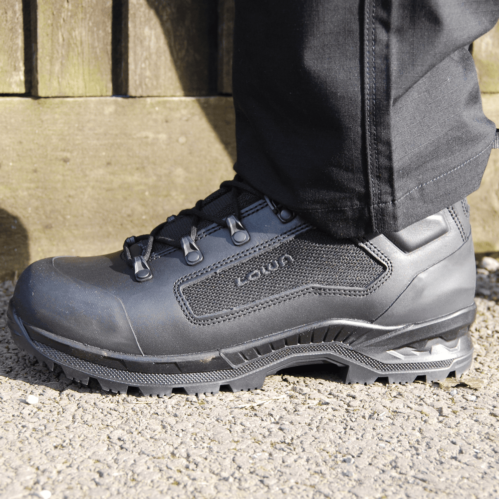 The Lowa Breacher GTX Black is part of Lowa’s new generation of tactical boots. The ankle-high upper offers an ideal combination of stability and freedom of movement. In addition to the comfortable dual-density PU midsole with integrated arch support for foot support over extra long shifts, the certified ankle protection system with PORON® tech­nology will keep you protected from bangs and scrapes.