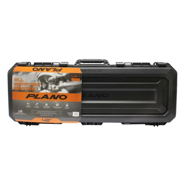 The Plano All Weather 42" Tactical Rifle and Shotgun Case Black featuring the weather tight Dri-Loc® seal, high-density pluck foam and one-sided convoluted foam, four dual stage heavy duty lockable latches and swivel carrying handles. Keep your weapons safe with this reinforced thick constructed rifle case with a rugged textured exterior. With a pressure release valve and rugged industrial strength construction to help withstand airline travel.