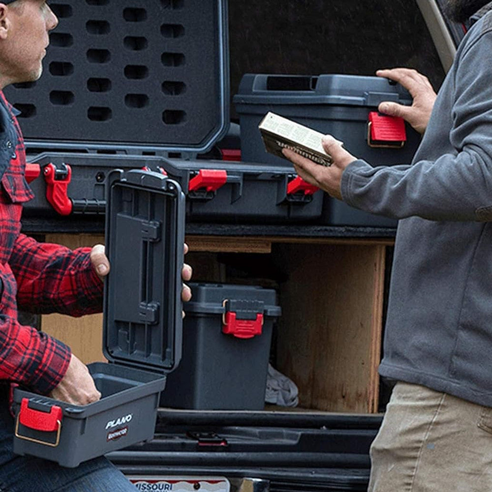 This small ammo field box from Plano is designed for safely transporting ammunition to the range. An O-ring lid seal keeps moisture out and the integrated Rustrictor Technology adds additional protection by infusing the box walls with a Vapor Corrosion Inhibitor (VCI) to guard against rust. The handle folds flat for convenient storage and the sturdy latch ensures the lid stays firmly closed. They’re also ideal for protecting other valuable, moisture-sensitive devices or equipment. Made in the USA. Other Features include: