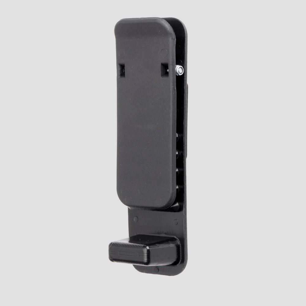 The Peter Jones Anti Tilt Klickfast Dock with Spring Clamp allows you to attach Klickfast mountable items on your person when you have a shirt or suit pocket to slip the Anti Tilt Klickfast dock into your pocket and you have a secure docking base.