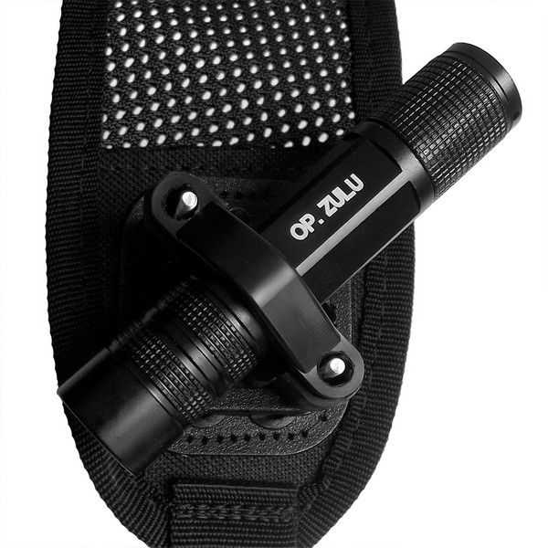 * To hold the Op. Zulu Z2.2 Securely, fasten the dock around the cylindrical part of the torch body as pictured.