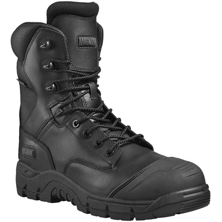 The Magnum Precision RigMaster is a waterproof safety boot with a YKK side zip for easy access. Featuring a durable waterproof full grain leather upper and waterproof and breathable bootie membrane to keep feet dry. The lightweight composite toe-cap and anti-penetration plate protect feet from falling objects and underfoot punctures. These work safety boots also have a hard-wearing TPU toe guard and are scanner safe. The M.P.A.C.T. Response insole provides maximum comfort and shock absorption while the PU high density midsole adds long lasting support. An SRC high traction rubber outsole is designed for maximum grip.