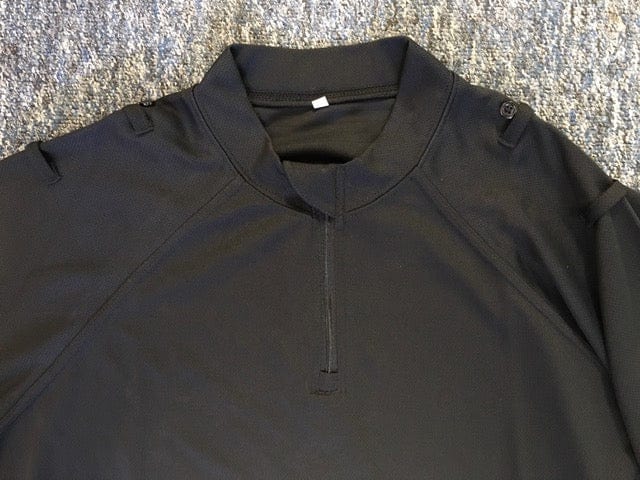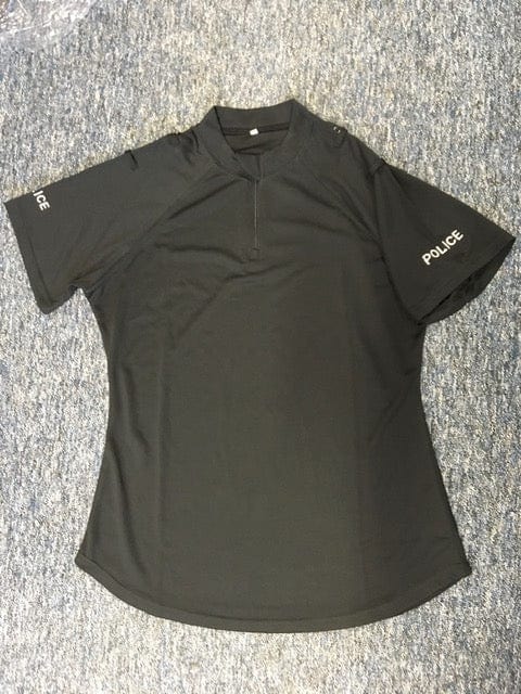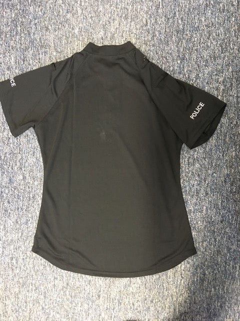 Police Uniform Wicking Top, Women's, Black, Short Sleeve, mixed (Used - Grade A) issued to most UK Police Forces, zip up collar, POLICE marked arms, moisture-wicking fabric and epaulette loops.