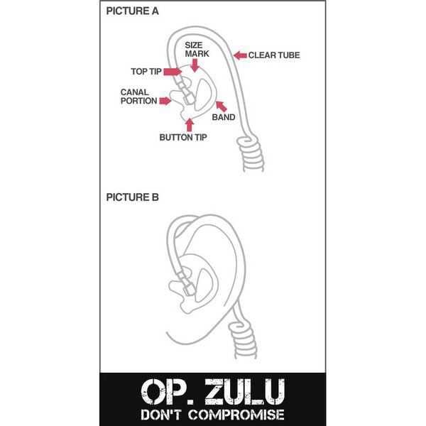 Op. Zulu Police Earpiece Gel Insert - Left is designed to fit all police acoustic earpieces. The gel insert replaces the standard in-ear bud to allow wearers to hear ambient noise whilst maintaining clear audio reception of radio communications.