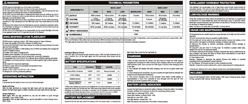 Ideal for every day carry, general use, maintenance, hiking, camping and dog walking, Fenix LD12R is a premium LED torch that will give many years reliable service.