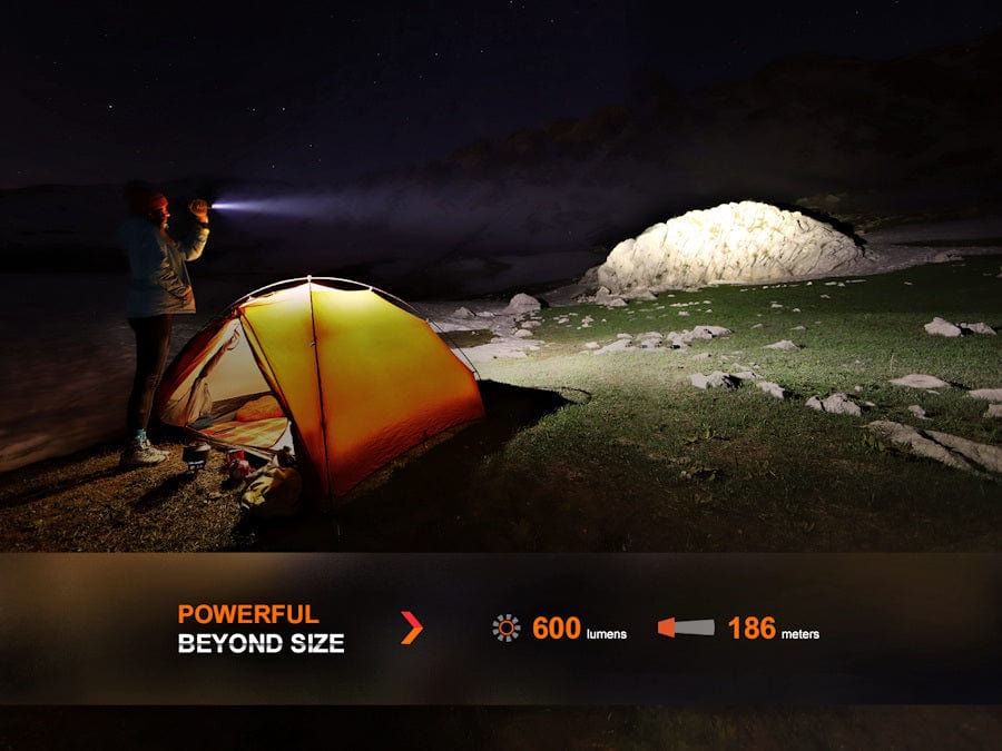 High: 600 lumens (1 hr 20 min total runtime) 186m beam