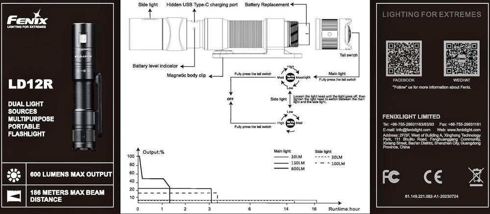 Fenix LD12R Dual Light Source Rechargeable Torch
