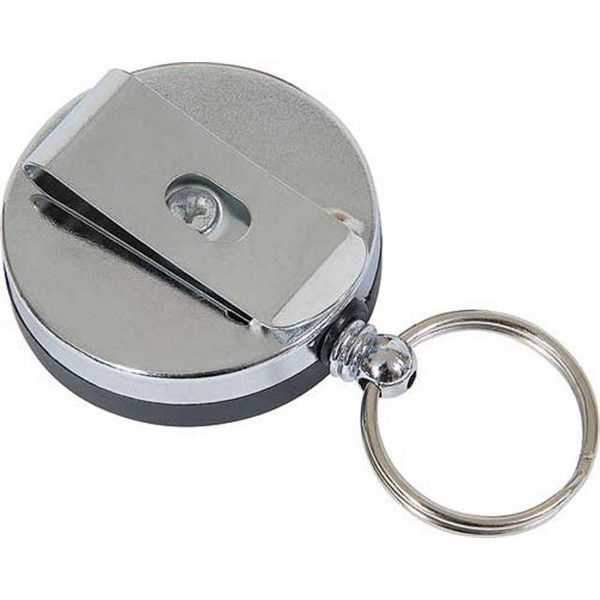 The Viper Key Lanyard - Retractable is 4cm in diameter with a chrome backing, belt clip and black frontage. It is ideal for holding keys and ID badges.