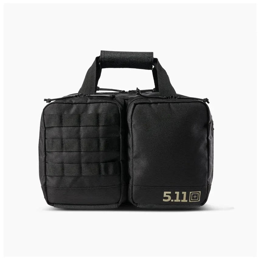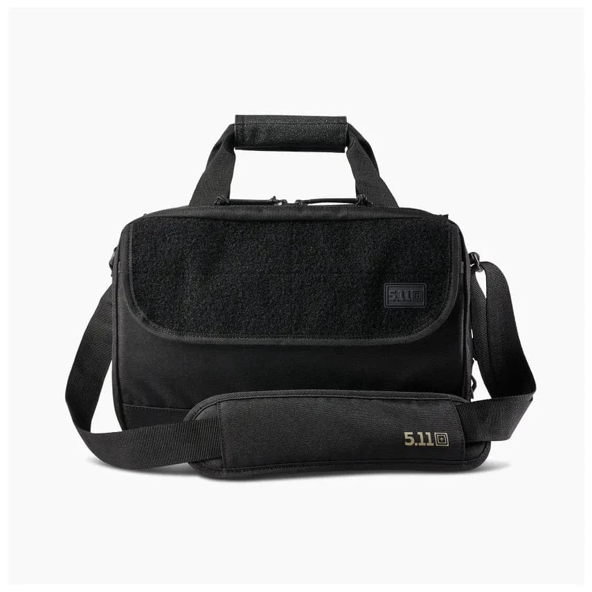 The 5.11 Range Ready Pro Black is designed for Keeping you organized. Life is easy with the multi-pocket Range Ready Qualifier bag. This tough, padded bag measures 13" L x 9" W x 8.75" H and comes equipped with lockable YKK zippers. The Qualifier is constructed from durable, all-weather 600D polyester with a TPU bottom to protect your gear. A zippered clamshell front pocket includes a document slip pocket, elastic band loops and a wipe-clean disassembly panel. In the main pocket, we added two padded, zippered pistol storage pockets, plus a removable divider with elastic bands and a web MOLLE panel. Dual rear zippered pockets with MOLLE facing hold extras. A top grab handle and removable padded shoulder strap make the Range Ready Qualifier an ideal grab-and-go solution for pistol training and qualifications.