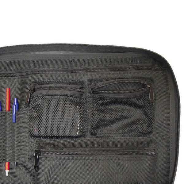 On each end there is an additional padded square pocket that can accommodate an iPad size tablet, Kindle or A4 notebook.