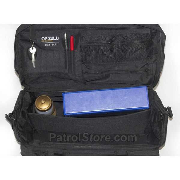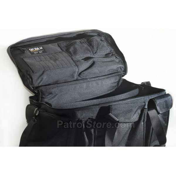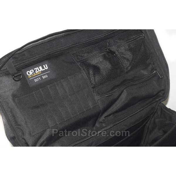 The Op. Zulu Duty Kit Police Bag has a large main compartment that measures 50cm long by 30cm wide by 30cm deep and contains an adjustable or removable central divider. The divider is padded and uses “T” end pieces for attachment. Unlike cheaper “L” constructions the “T” construction provides more secure attachment and prevents bowing of the divider. The rigid walls of the main compartment are also padded to protect its contents and provide structure and support to the bag.