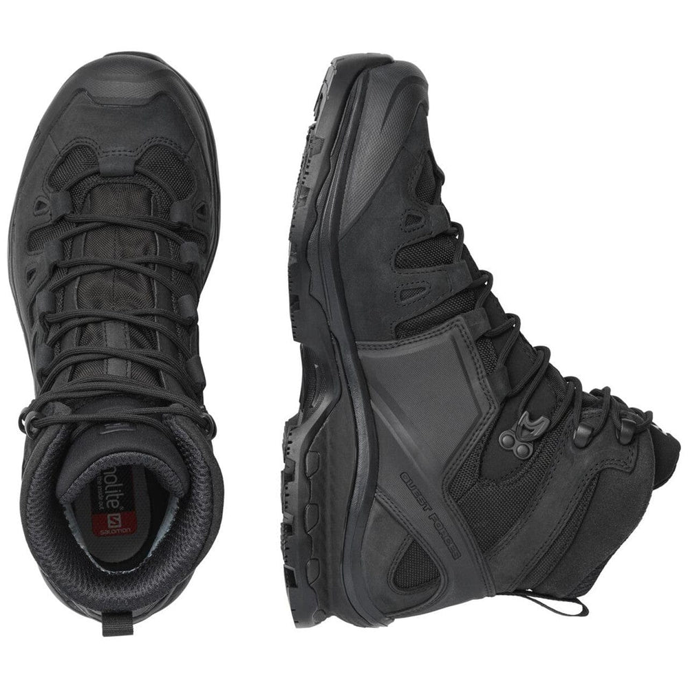 The Salomon Quest 4D GTX Forces 2 Black is a crossbreed of a sneaker and a mountain boot is just that - works well in rough terrain, but fits like a sneaker. Means it's possible to give a good sprint if necessary. Lined with Gore-Tex and has a bit of shaft too. "Military" colour scheme, i.e. black. A popular choice among many special forces etc. these days.